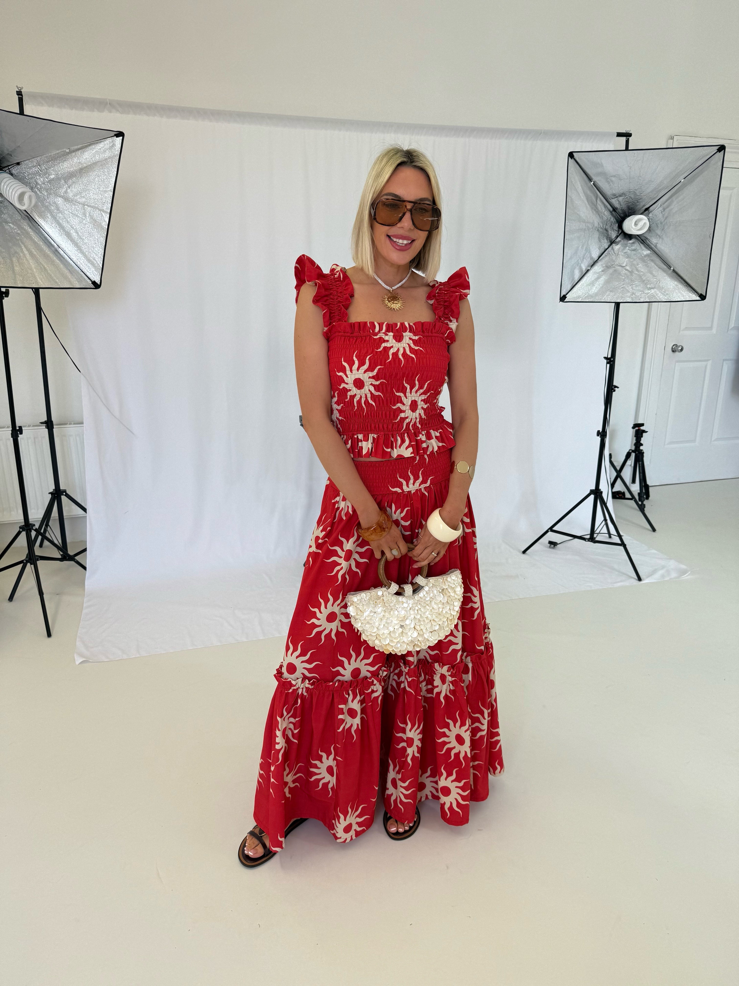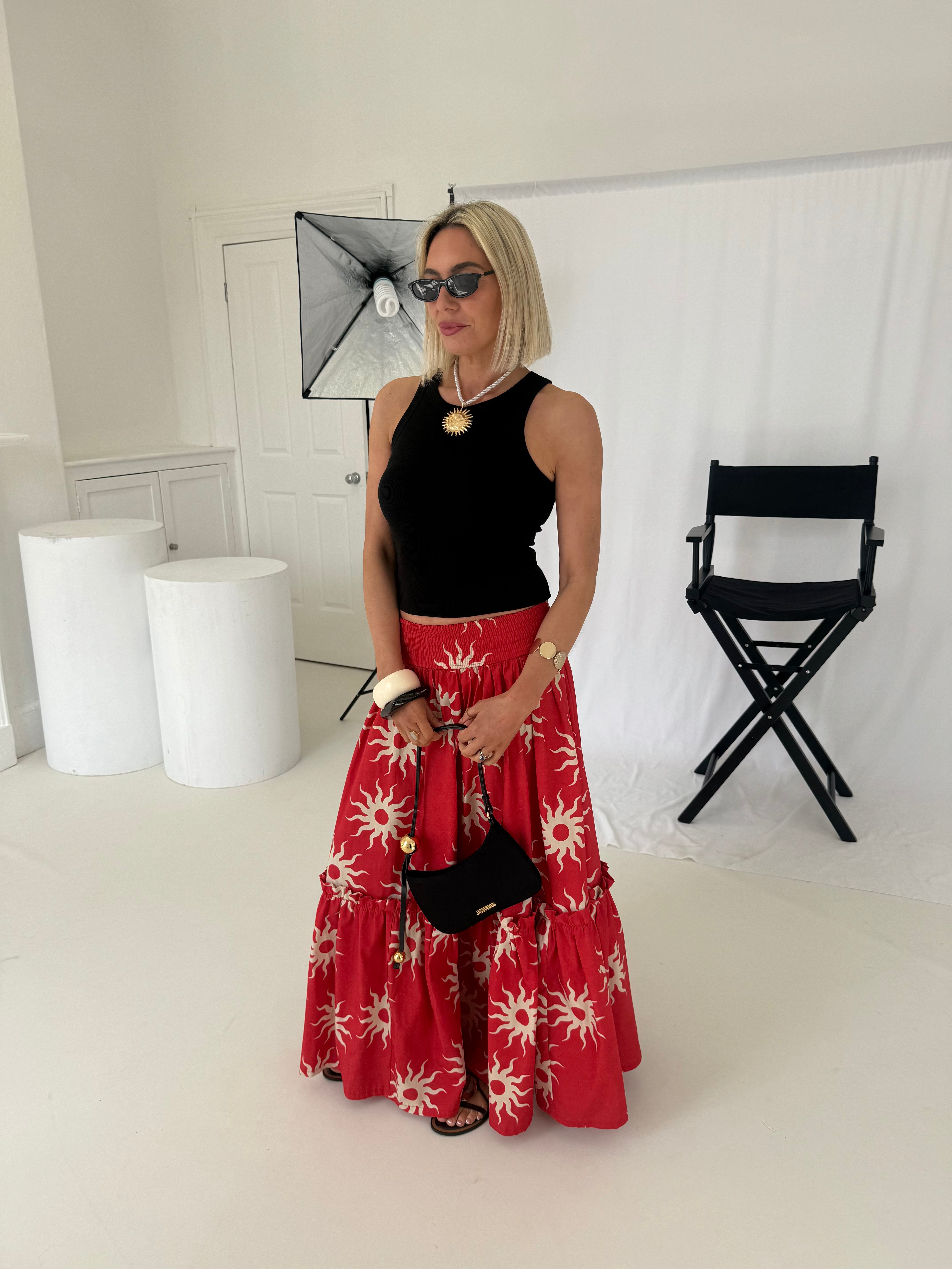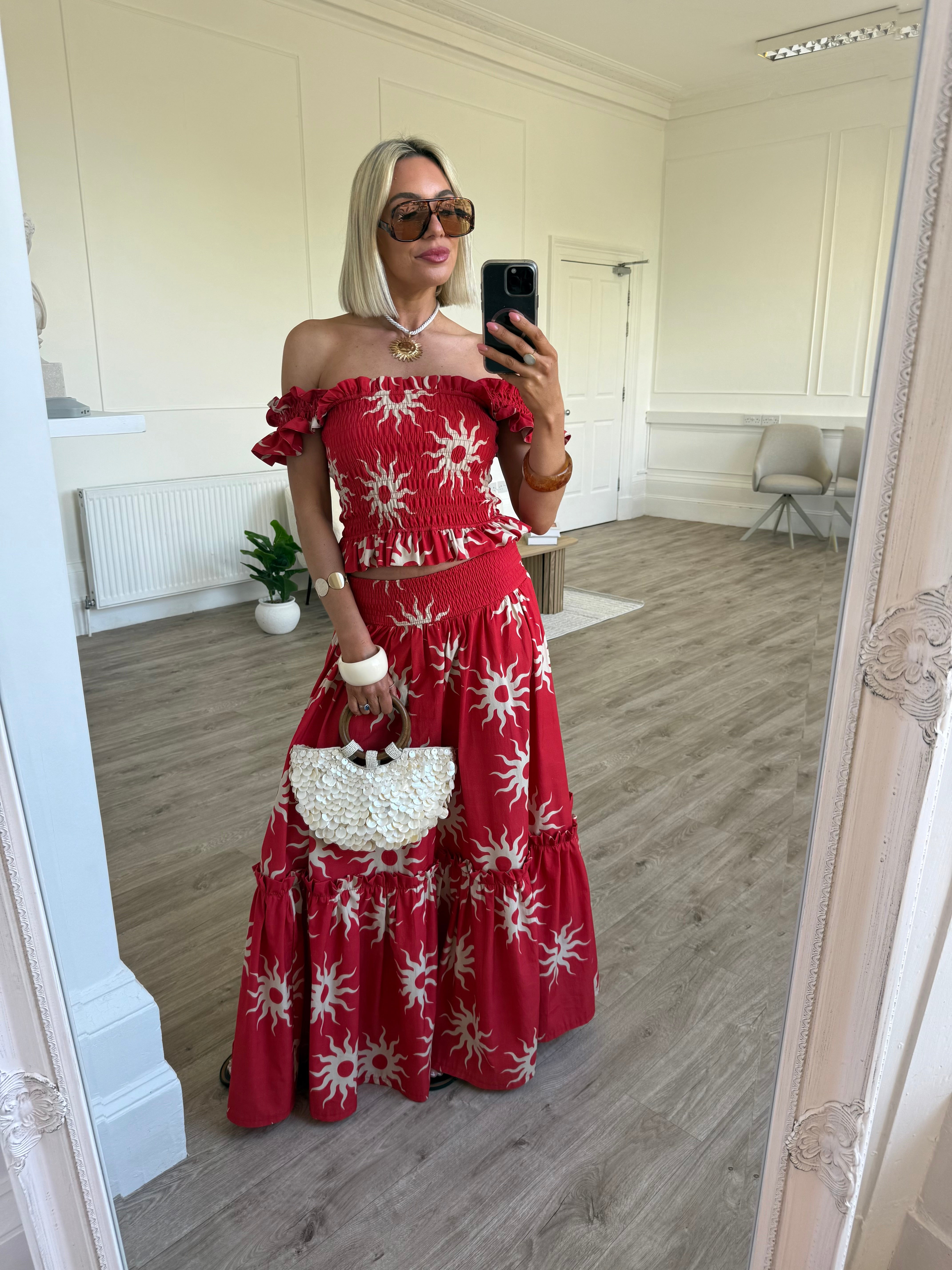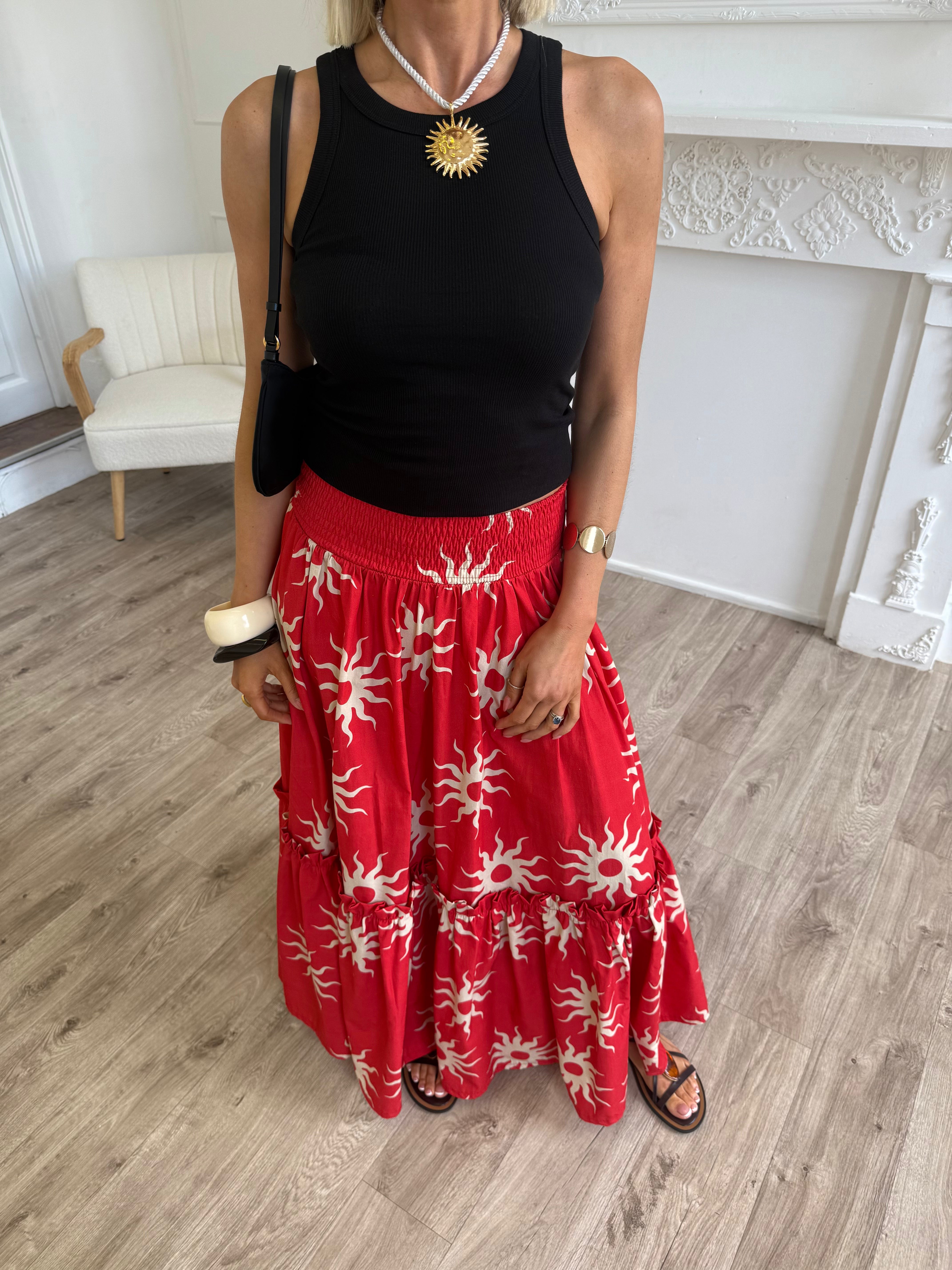 Gia Skirt - Red Sunburst