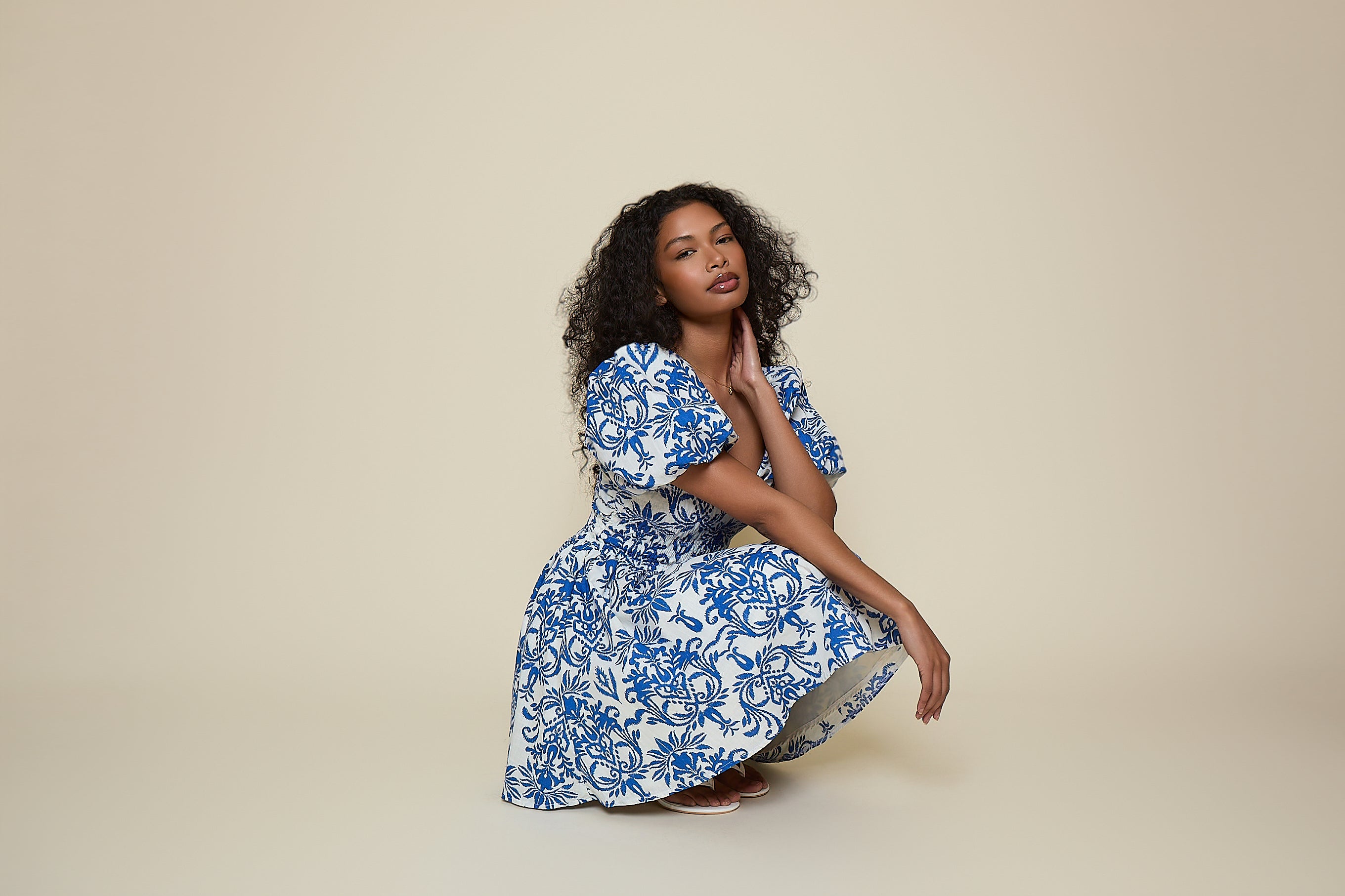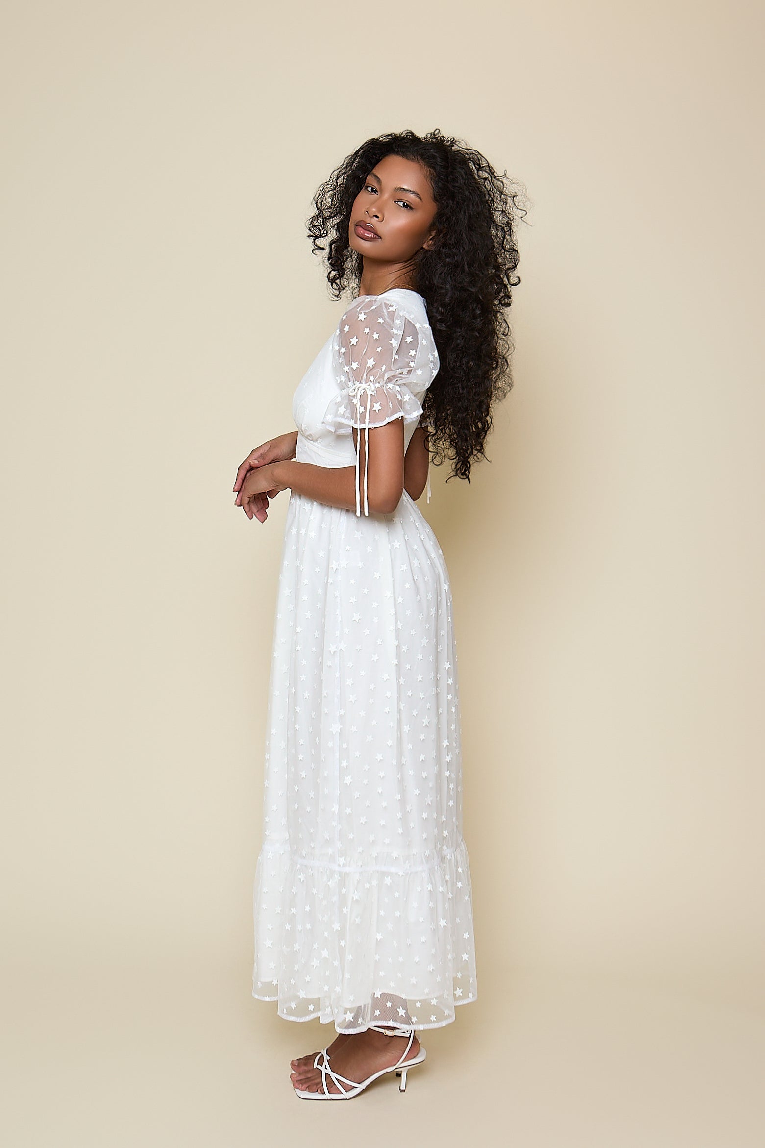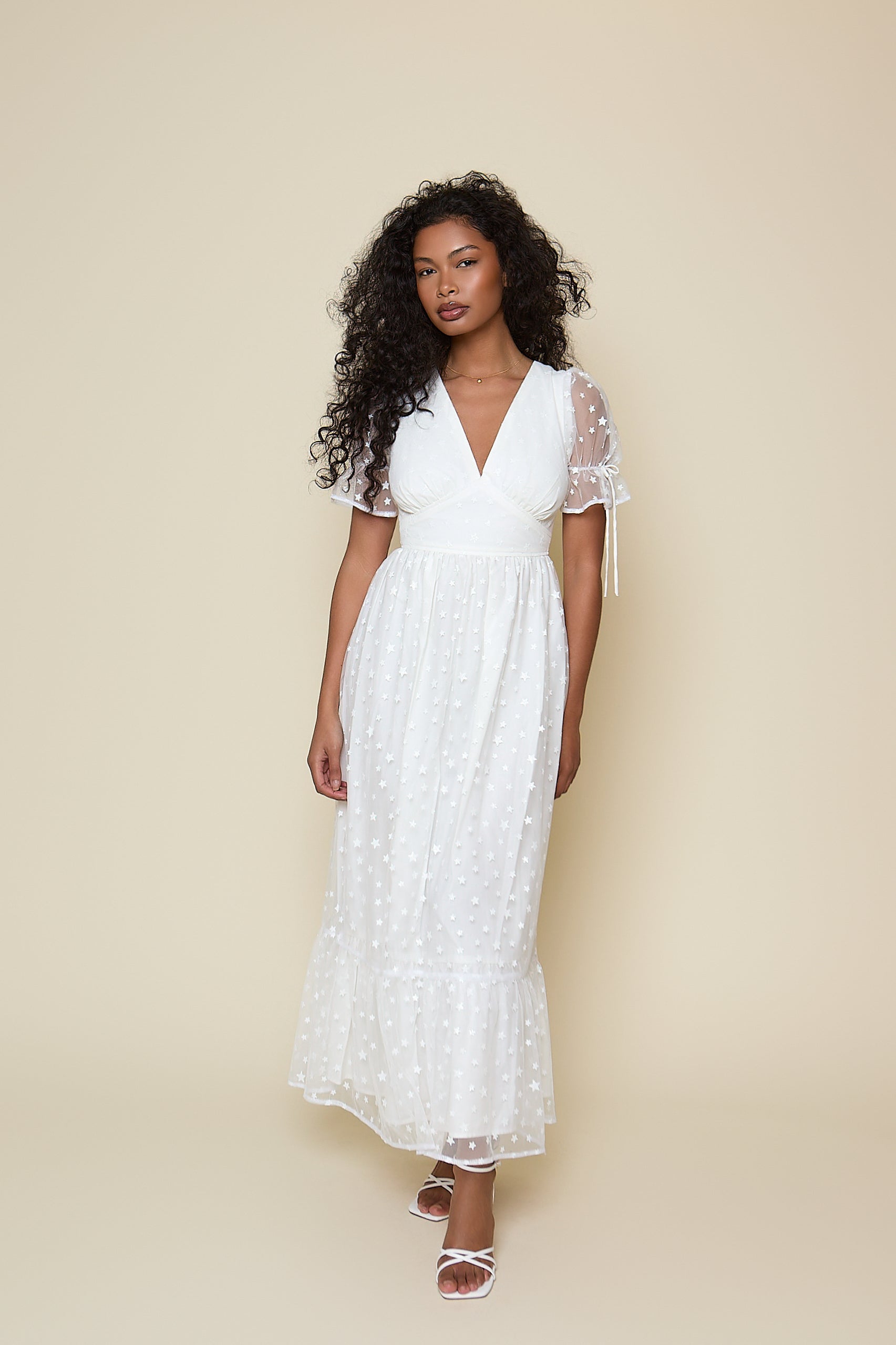 Paloma Dress - Ivory Star Midi Length