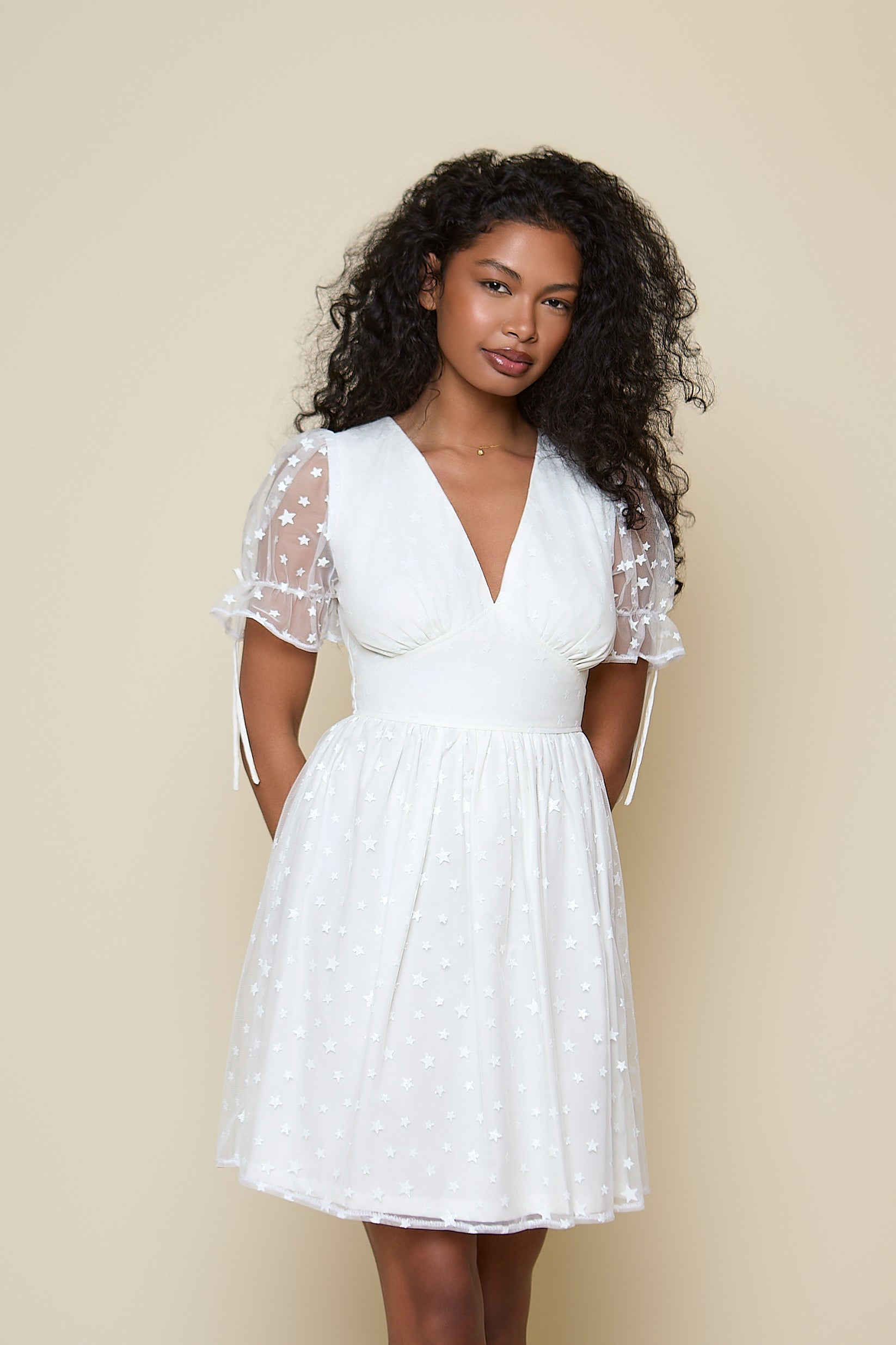 Paloma Dress - Ivory Star Mini Length