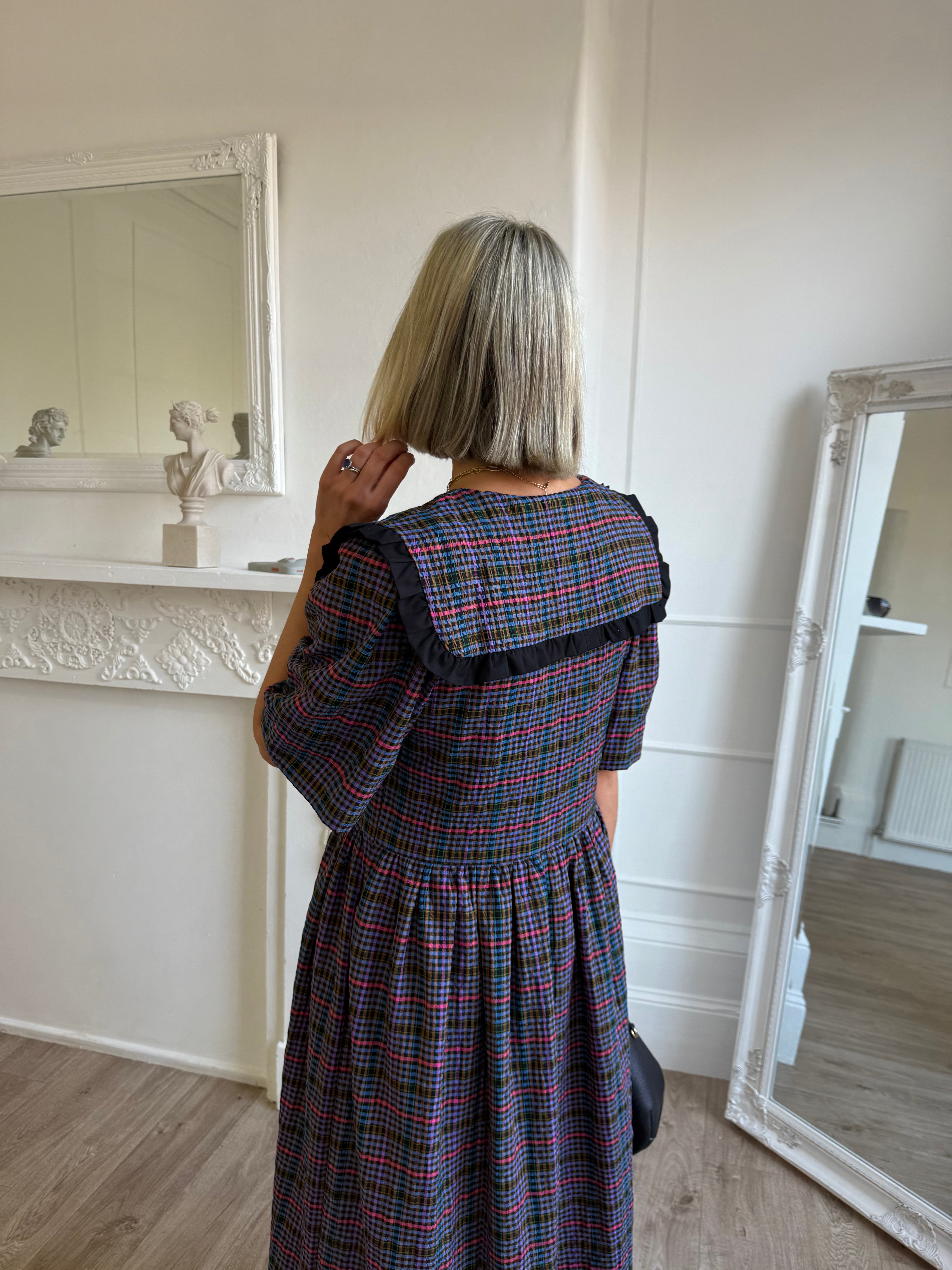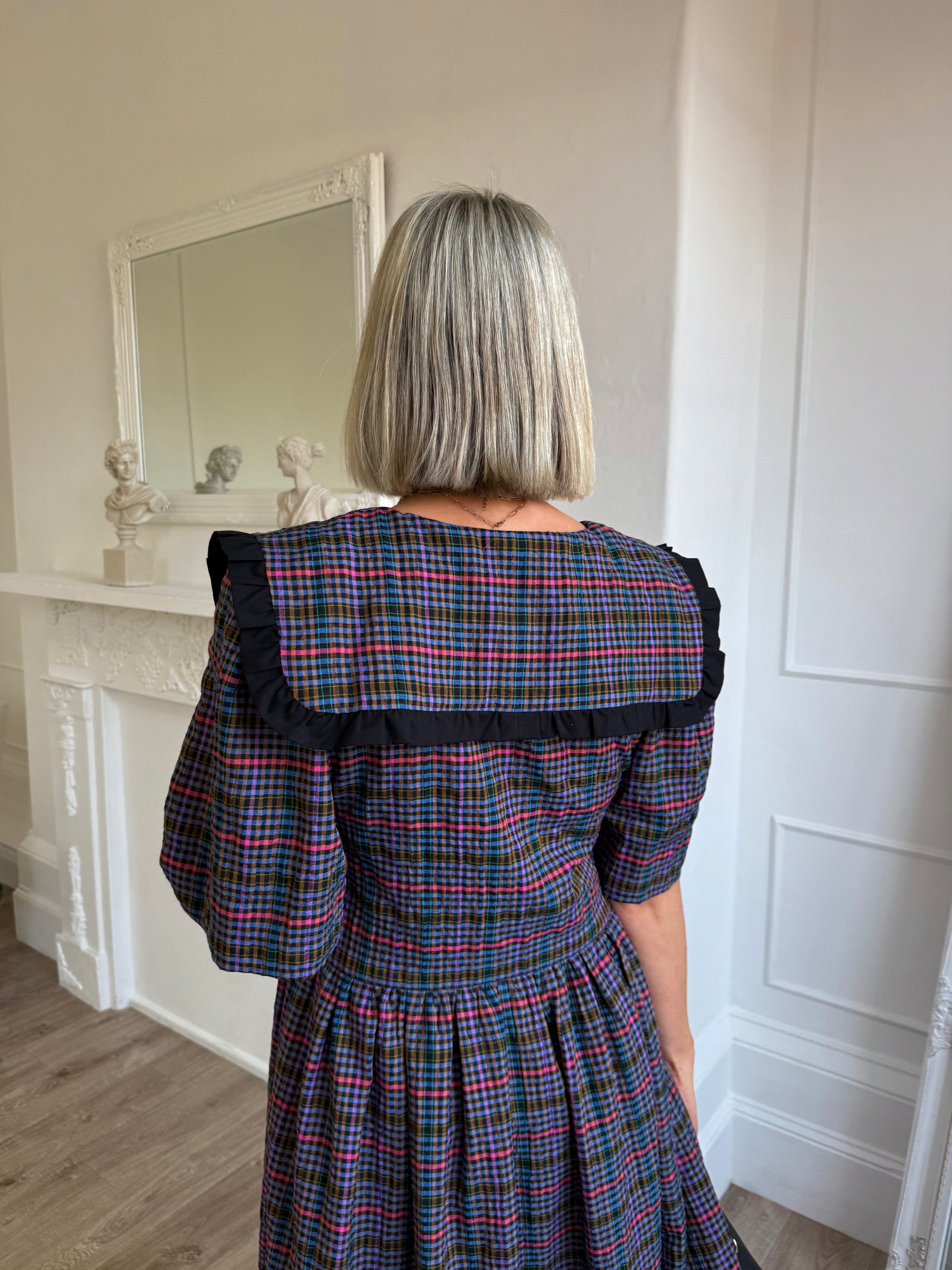 Step out in style with the Bertie Dress in Tartan! This iconic piece features an oversized collar and handy pockets, blending fun and function effortlessly. It offers a cool, carefree vibe that's perfect for a quick, chic chuck-on look. Embrace your inner cool girl energy with this playful wardrobe staple.