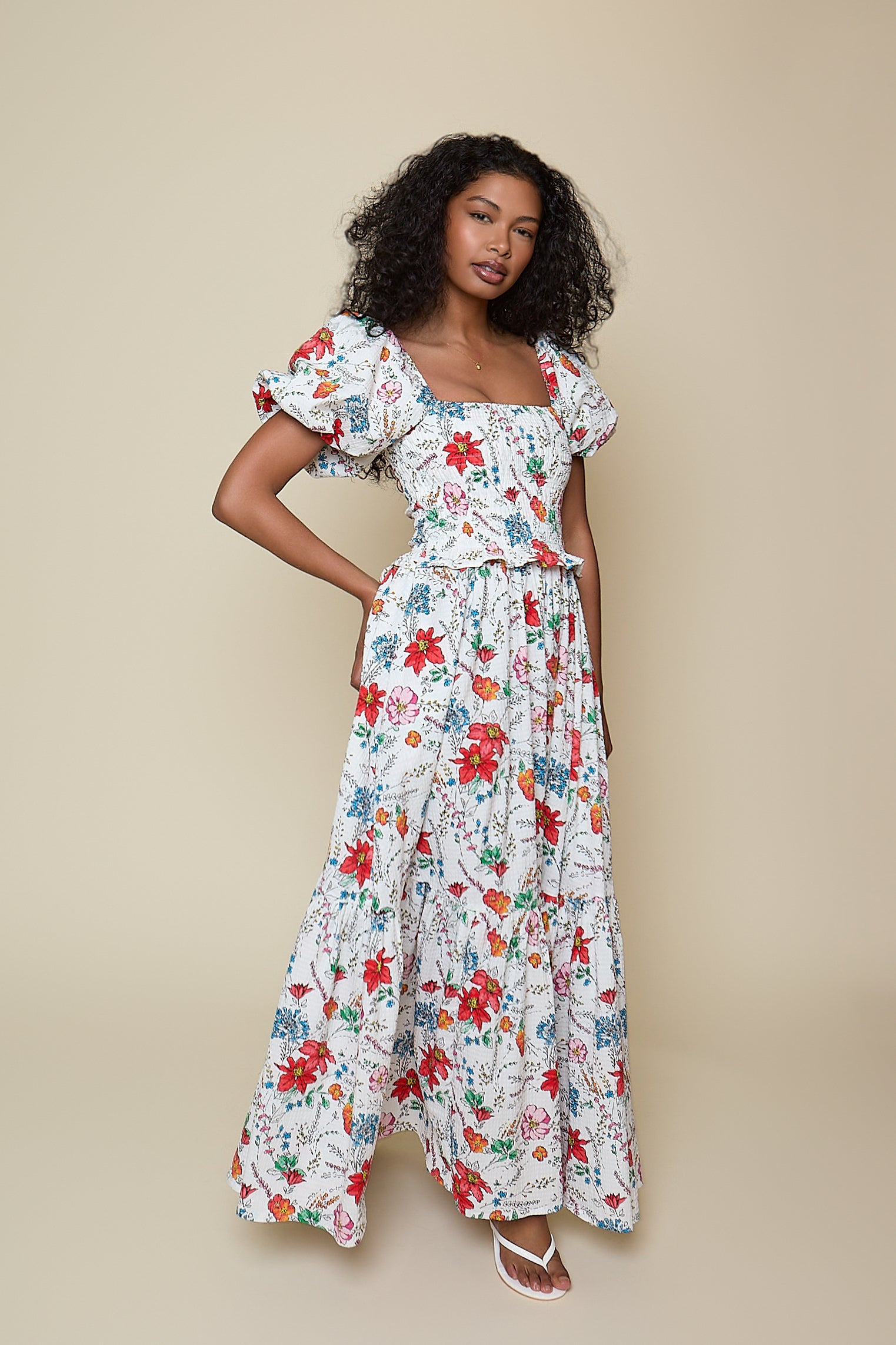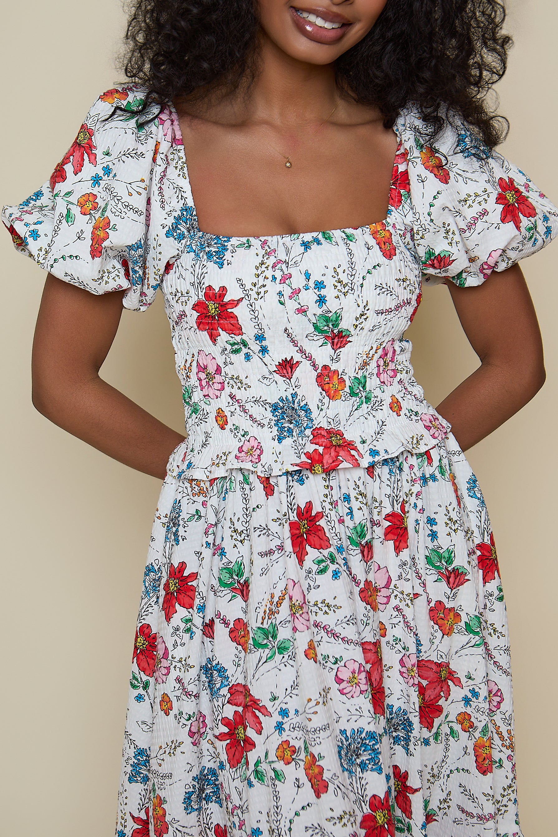 The Ophelia Dress is the perfect summer dress for anyone looking for an easy to wear  style. Its fully shirred bodice makes it ideal for those unsure about sizing or in between sizes. The frill detailing at the waist adds a touch of femininity while accentuating your figure. Complete with pockets and puff sleeves, this dress is both practical and stylish. And let's not forget our gorgeous new floral print!
